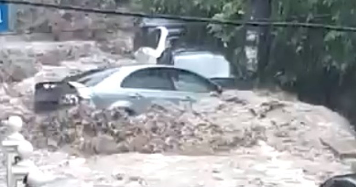 Улицы города превратились в бурлящие реки, в которых плавают автомобили