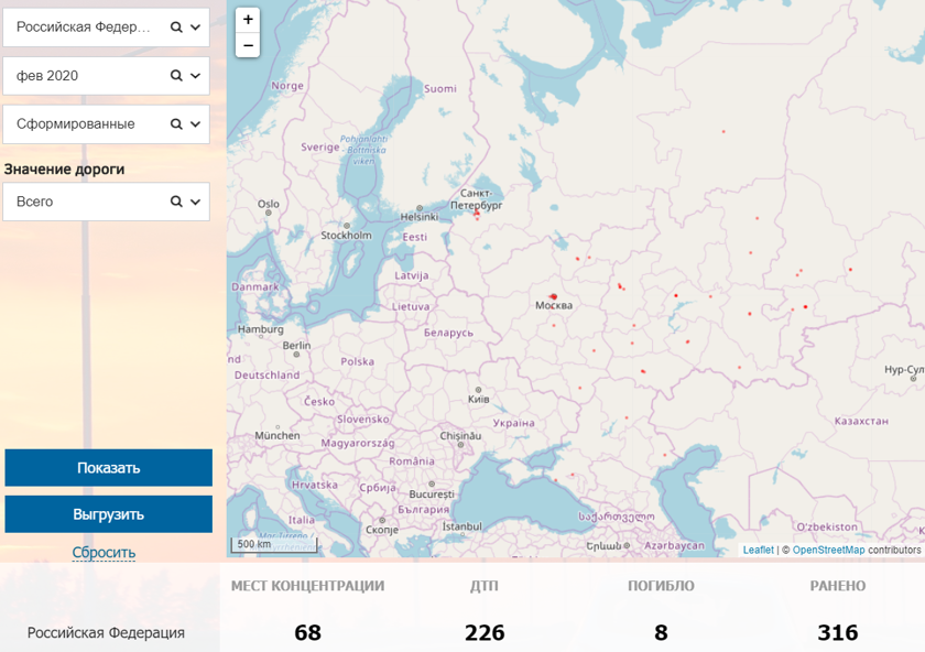 Теперь на сайте можно отслеживать места концентрации ДТП и «предочаговых» участках дорог с разбивкой по субъектам РФ и значениям дорог — федеральные, региональные и межмуниципальные, местные и частные.