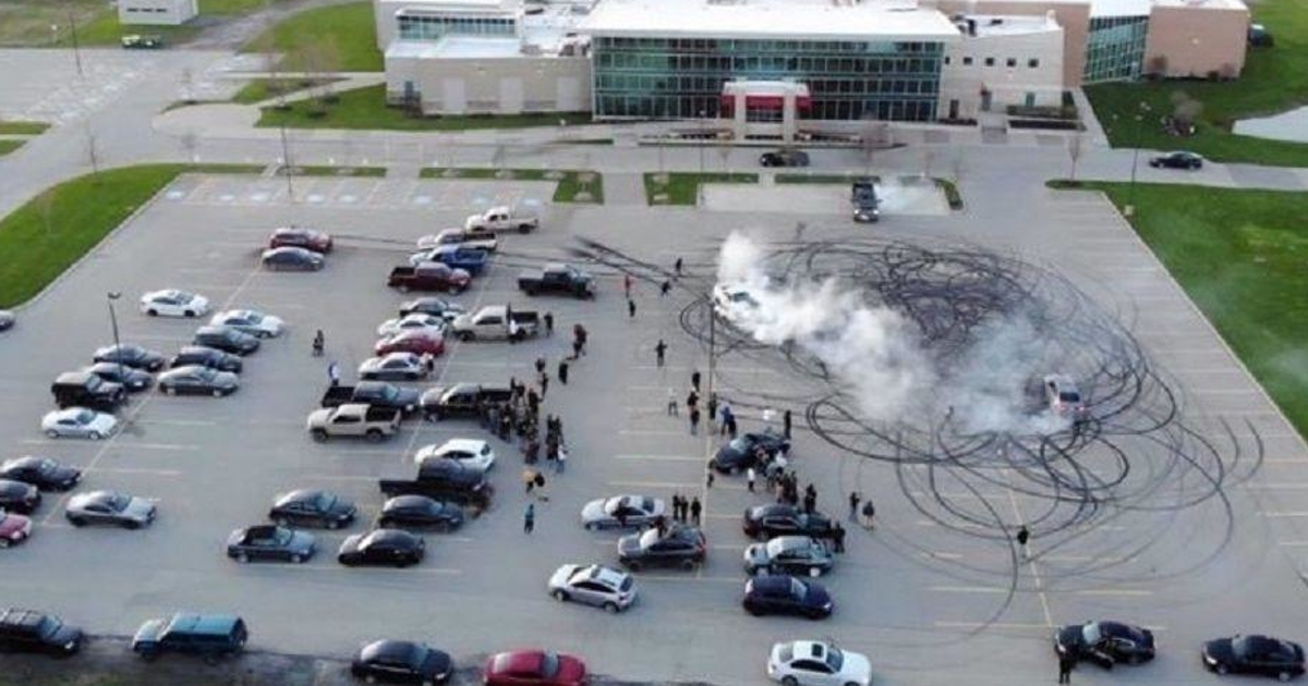 В канадском городе Лондон на парковке, расположенной возле церкви Форрест-Сити, несколько десятков гонщиков устроили дрифт-заезды. В результате асфальт стоянки покрылся черными следами от сожженной резины.
