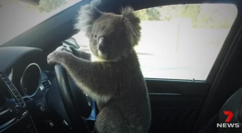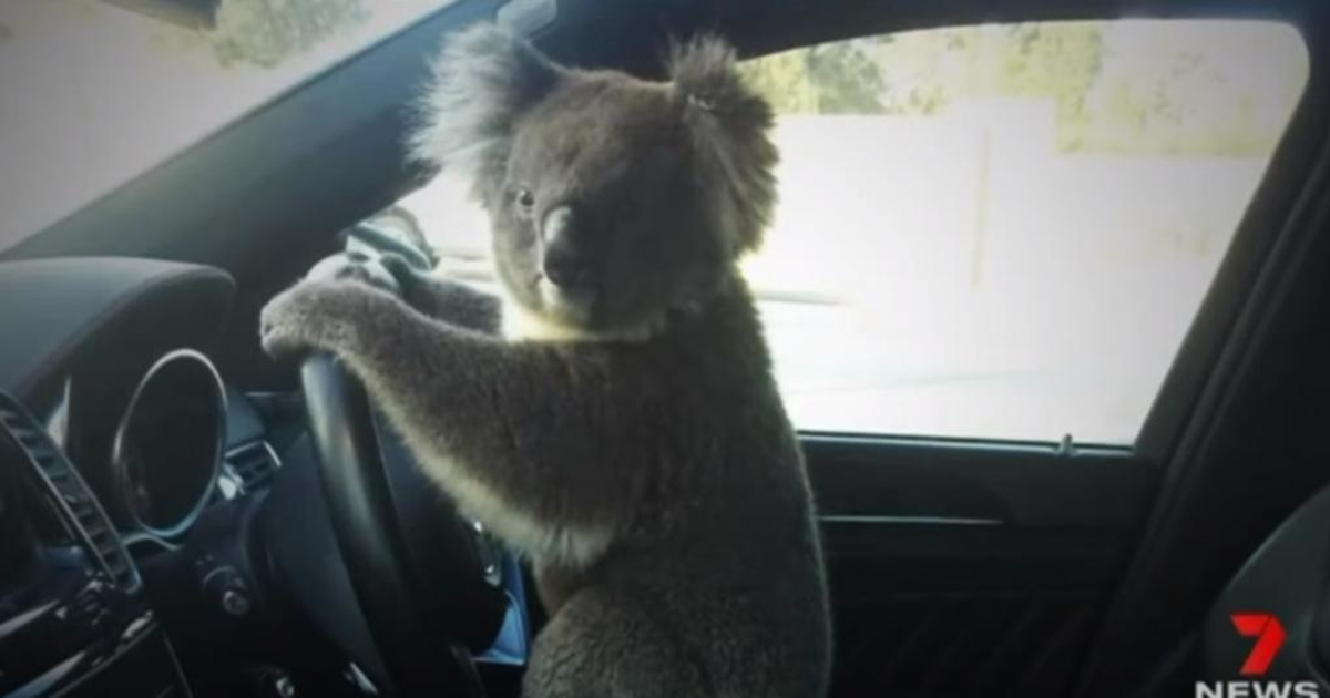 Когда водительница снова заглянула в салон, то увидела, что коала держится за руль, будто готова прямо сейчас отправиться в поездку — и сфотографировала ее.