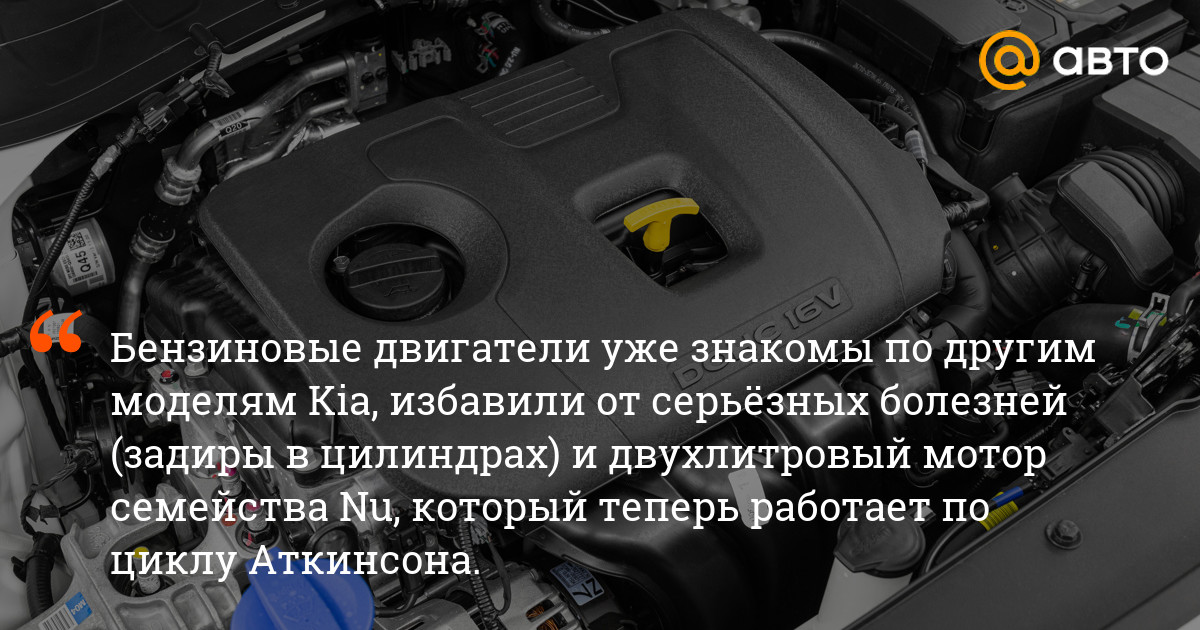 Но всё это я видел и в Корее. А главное спрятано от глаз. Под капотом здесь двухлитровый мотор серии Nu, который вроде бы хорошо известен по другим моделям Kia. Но работает он теперь по экономичному циклу Аткинсона, поэтому крутящий момент снижен до 180 Нм — и передаёт его колёсам не привычный 6-ступенчатый автомат, а… новый вариатор IVT!