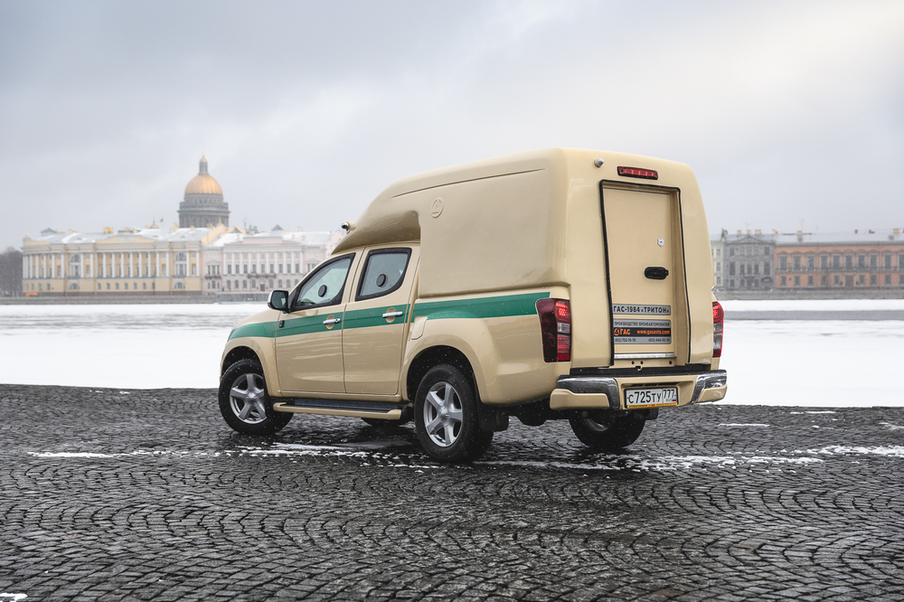 Инкассаторский фургон на шасси Isuzu D-Max проектировали шесть месяцев, но теперь на производство одного броневика уходит всего 30 дней. В год планируют собирать порядка 80 ГАС-1984 «Тритон» при общей мощности предприятия до 500 спецмашин