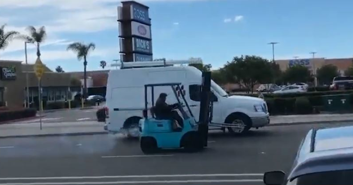 #breaking Midway district keeping it interesting. A low speed pursuit between a forklift and @SanDiegoPD ends when a passerby reaches in and removes the key. Now the hunt for the owner of the forklift. @fox5sandiego pic.twitter.com/bW69IVYcNV