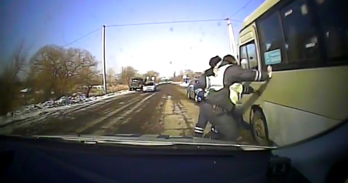 Пьяный угонщик автобуса протаранил полицейских (видео)