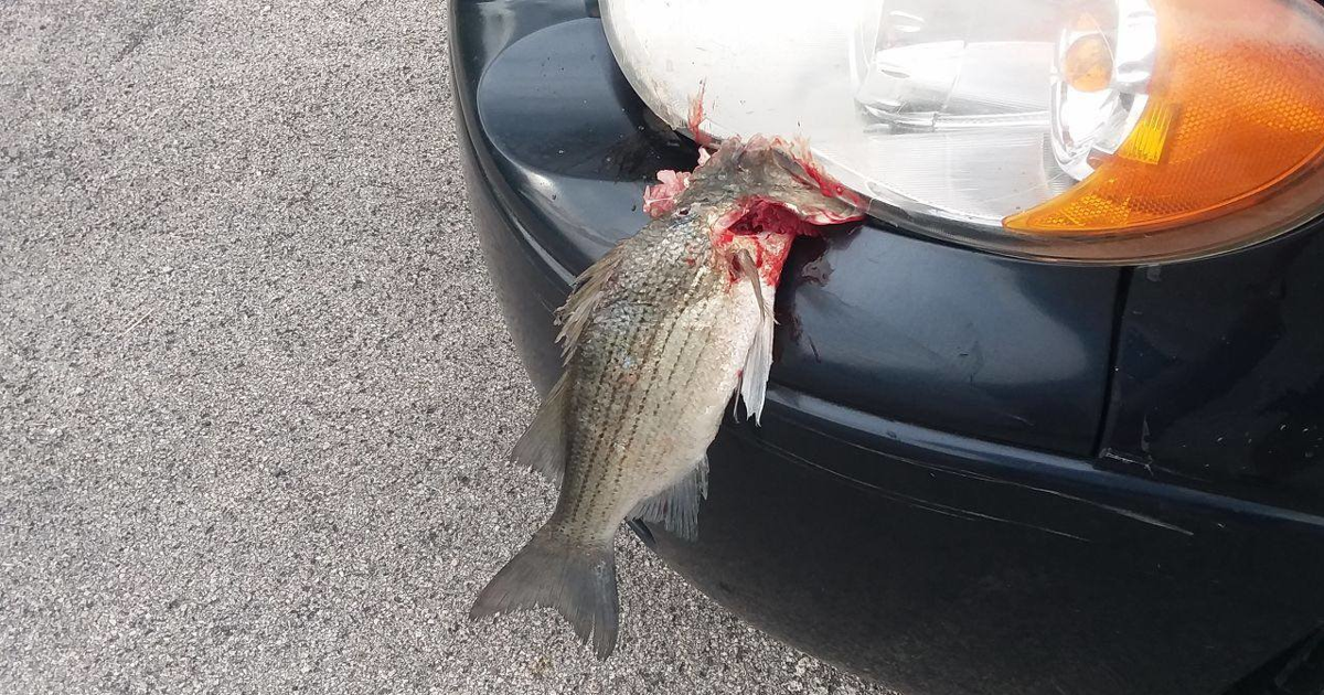 В штате Теннесси, США, рыба упала с неба на автомобиль и застряла в бампере. О происшествии рассказал The Charlotte Observer.