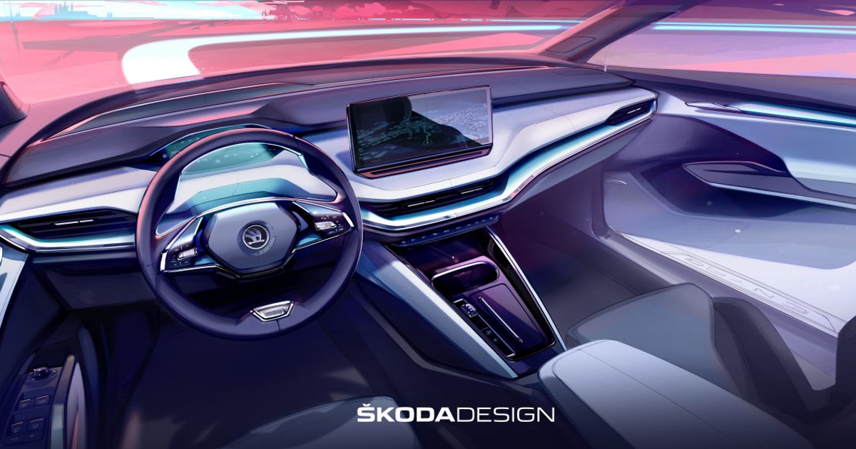Компания Skoda опубликовала изображение салона своего первого электрического кроссовера Enyaq.