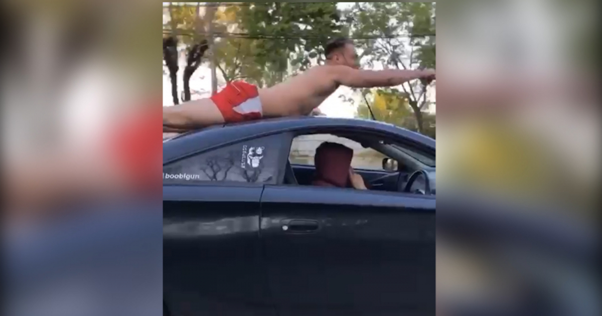 В управлении МВД России по Приморскому краю рассказали, что владельцем «Тойоты» оказался 23-летний местный житель, который и решил забраться на крышу и принял «позу супергероя», а за руль попросил сесть своего знакомого.