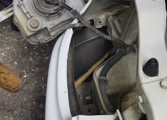 Чтобы вытащить змею, спасатели сняли фару автомобиля и открутили передний бампер. Змею отпустили — это был обычный полоз.