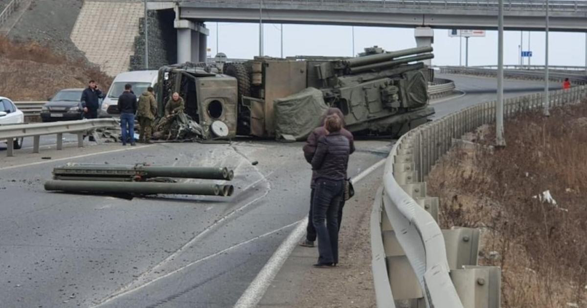 На объездной трассе «Седанка — Патрокл» во Владивостоке перевернулся самоходный зенитный ракетно-пушечный комплекс (ЗРПК) «Панцирь-С1»