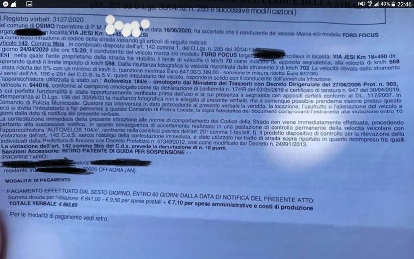 Джованни Стролого из комитета по соблюдению правил дорожного движения опубликовал фотографию документа о штрафе и раскритиковал полицию за то, что она не проверила информацию. И посоветовал женщине не просто соглашаться на отмену штрафа, а требовать компенсацию.